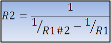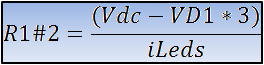 En esta fórmula no conocemos aún el valor del paralelo R1#2 , pero podemos obtenerla de la siguiente fómula, puesto que queremos ahora obtener una iLeds = 20 mA